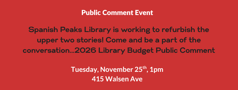 Did you know that there is an annual budget review at the Spanish Peaks Library that is open to the public? Each year we at the library welcome the community to attend the budget meeting, and invite attendees to ask questions and share their opinions about how the...