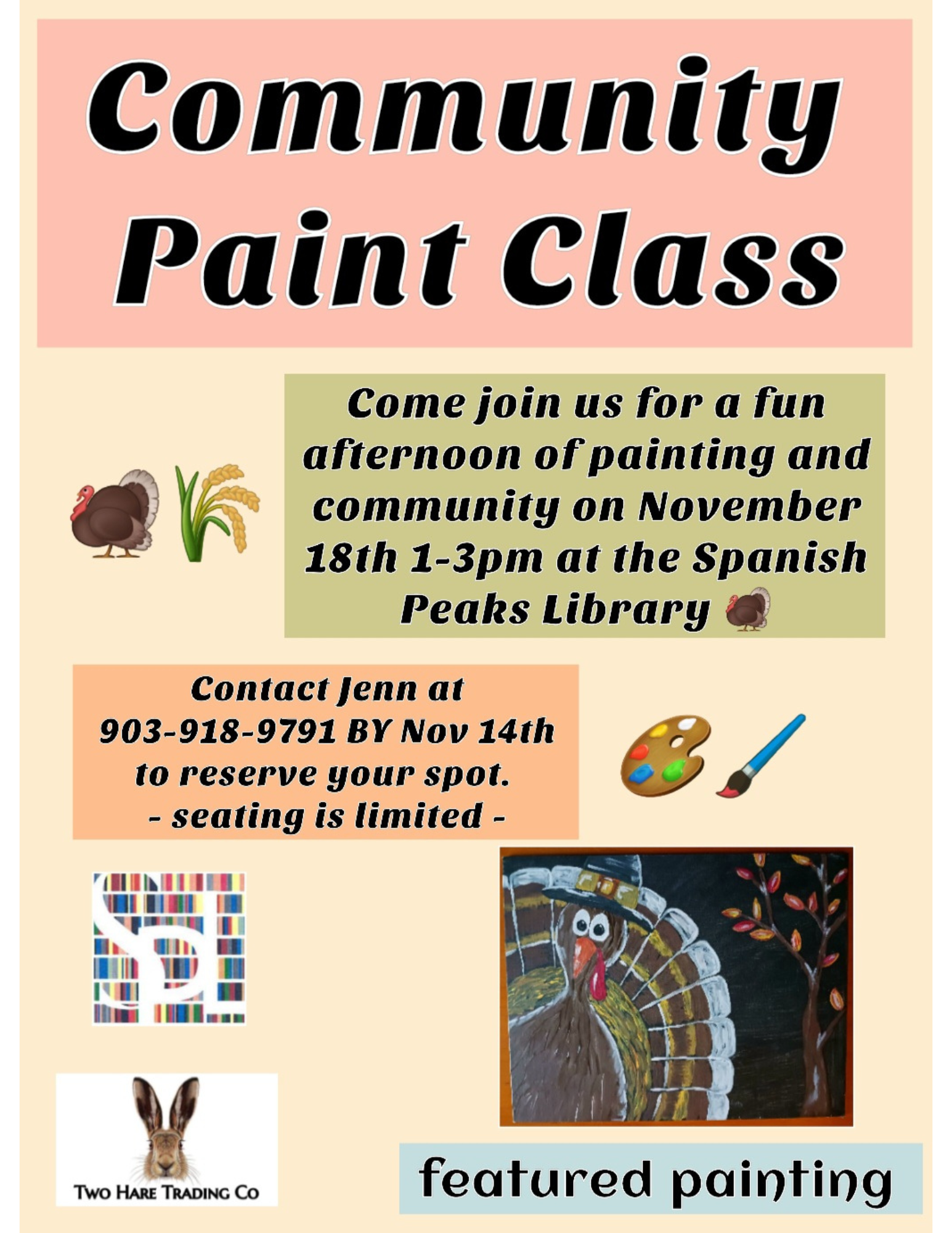 Join art instructor Jenn Dunn for a monthly Community Paint Class for adults at the SPLD.  The First class will take place Tuesday, November 18th from 1-3 PM in the […]