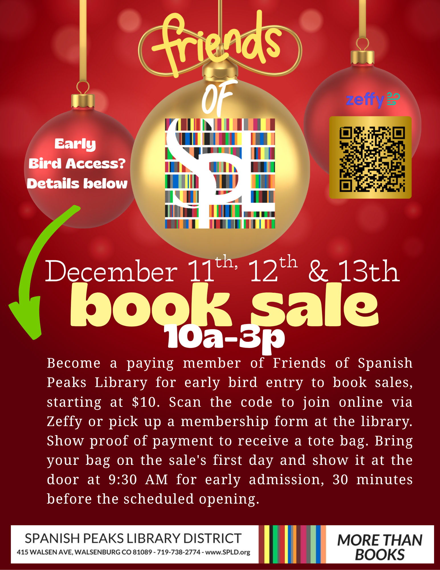 Join us for a Book Sale! The Friends of the Spanish Peaks Library Book Sale will take place from Thursday, December 11th, to Saturday, December 13th, from 10 AM to […]