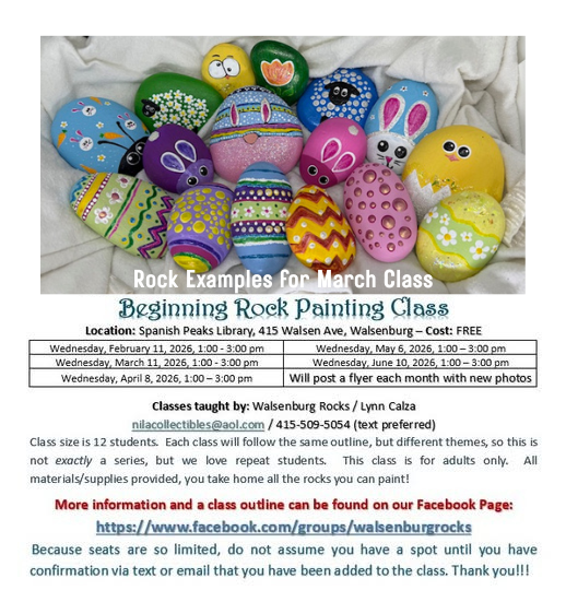Join art instructor Lynn Calza for a Rock Painting Class for adults at the SPLD. This class will take place on Wednesday, March 11th from 1-3 PM in the SPLD […]