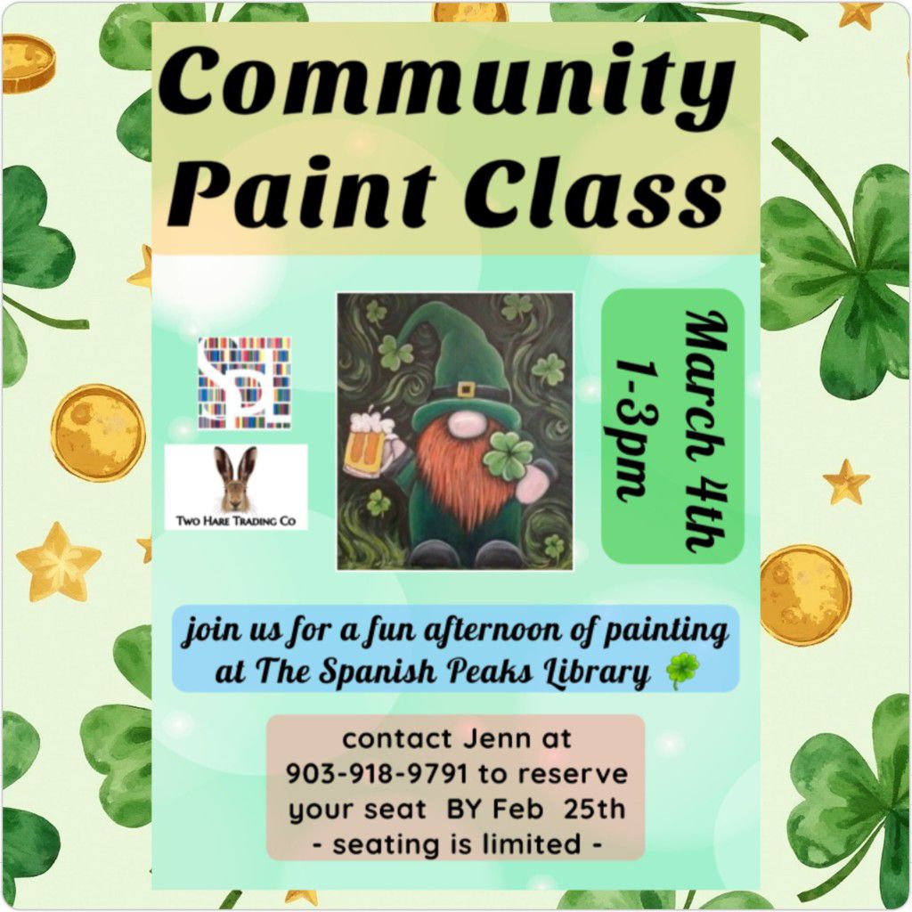 Join art instructor Jenn Dunn for a monthly Community Paint Class for adults at the SPLD. The third class will take place Wednesday, March 4th from 1-3 PM in the […]
