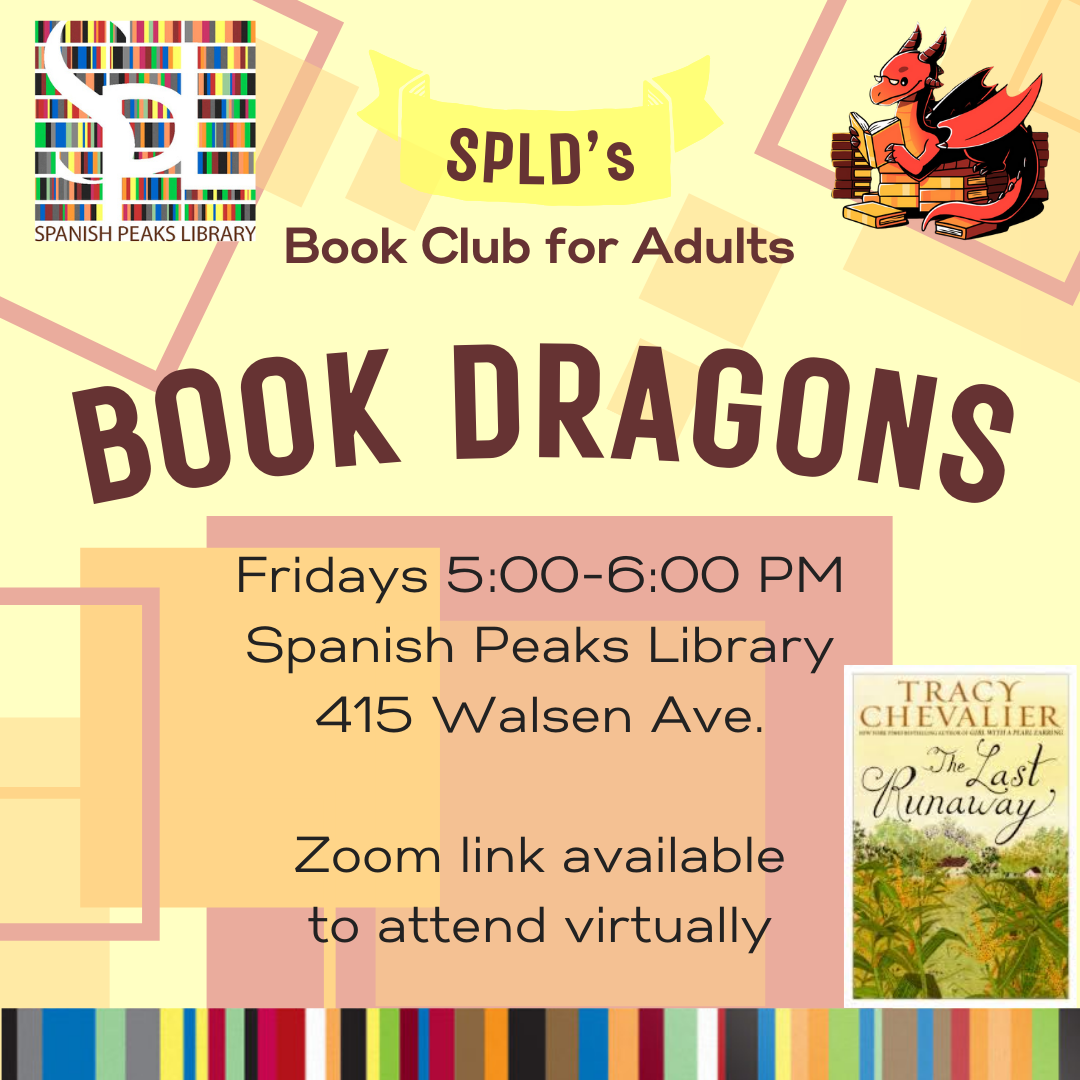 CURRENTLY READING: "The Last Runaway" By: Tracy Chevalier Anyone Can Join at Any time. We have Snacks!! PLEASE JOIN US! Spanish Peaks Library is inviting you to a scheduled Zoom meeting. Topic: Spanish Peaks Library's Zoom Meeting Time: Mar 21, 2025 05:15 PM Mountain Time (US and Canada) Every week on Fri, until Oct […]