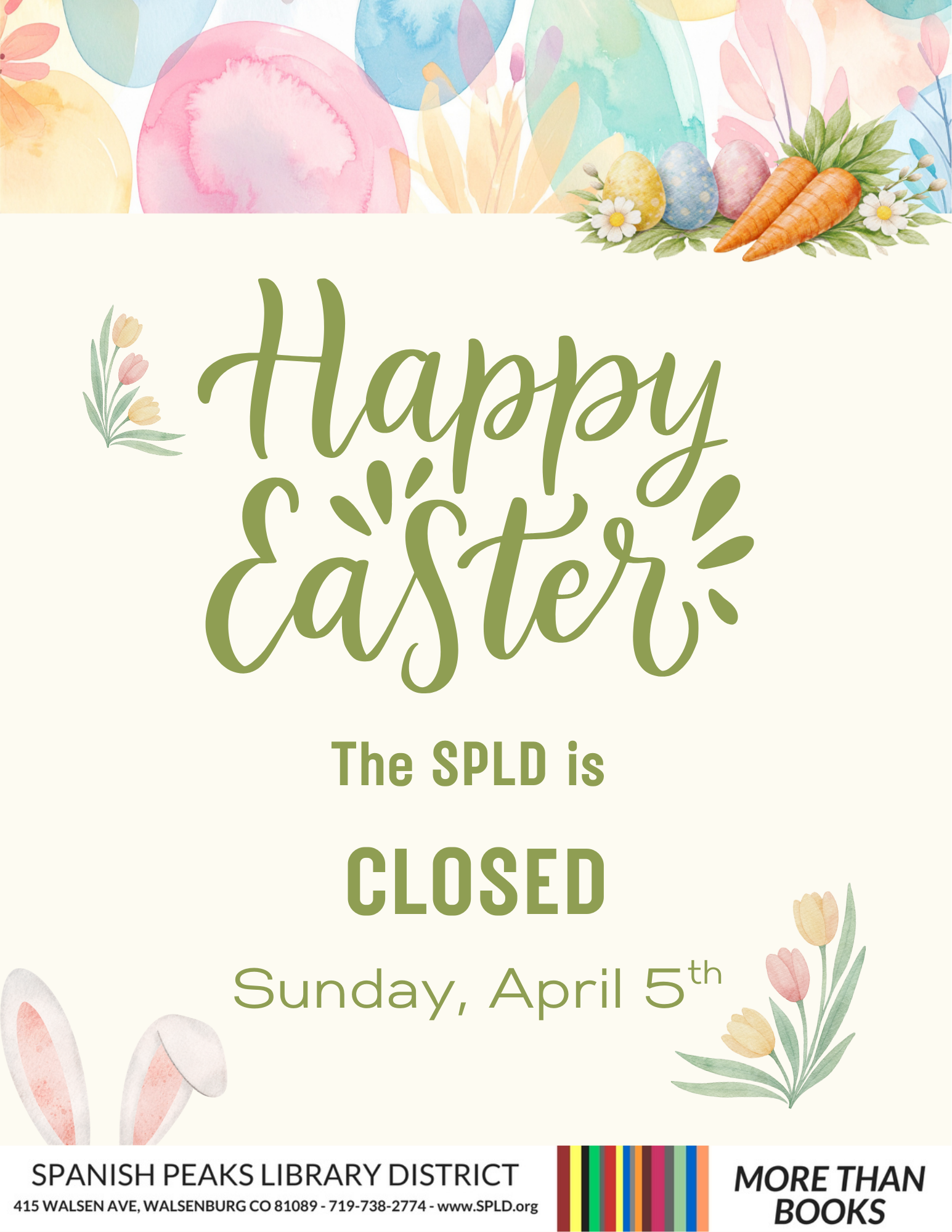 The Spanish Peaks Library will be closed Today, April 5th, for the Easter Holiday. We wish all who celebrate a joyful and peaceful day! For any Library needs, please visit […]