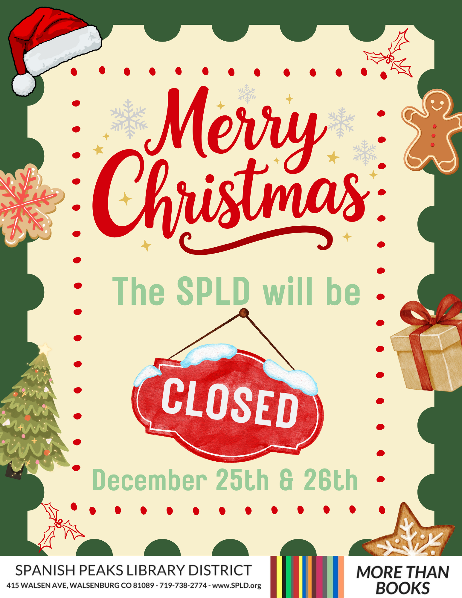 The Spanish Peaks Library District will be closed Thursday and Friday, December 25th and December 26th for the Christmas Holiday. For any library needs please visit our cloud library app […]